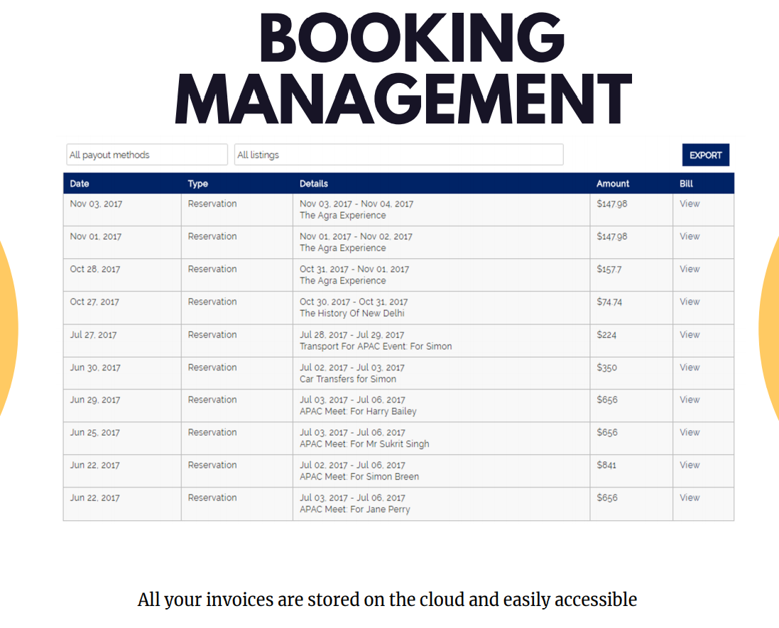 Communicate with your clients directly, curate packages & stays and share on all social media platforms. Centralized dashboard for all communication and invoices